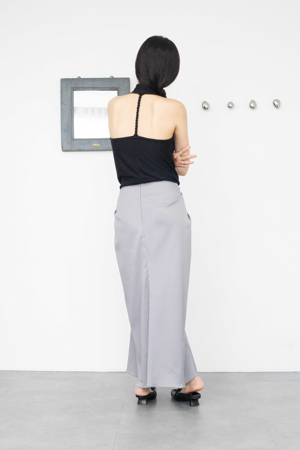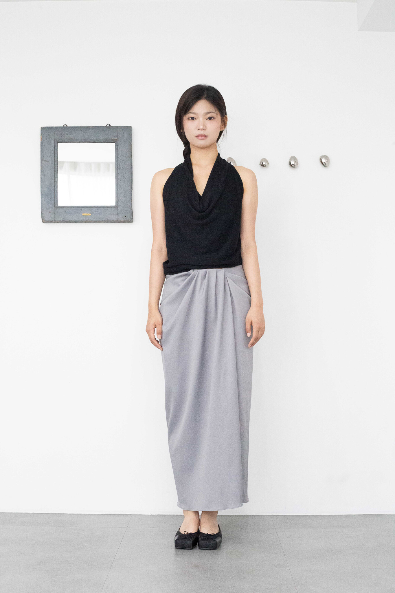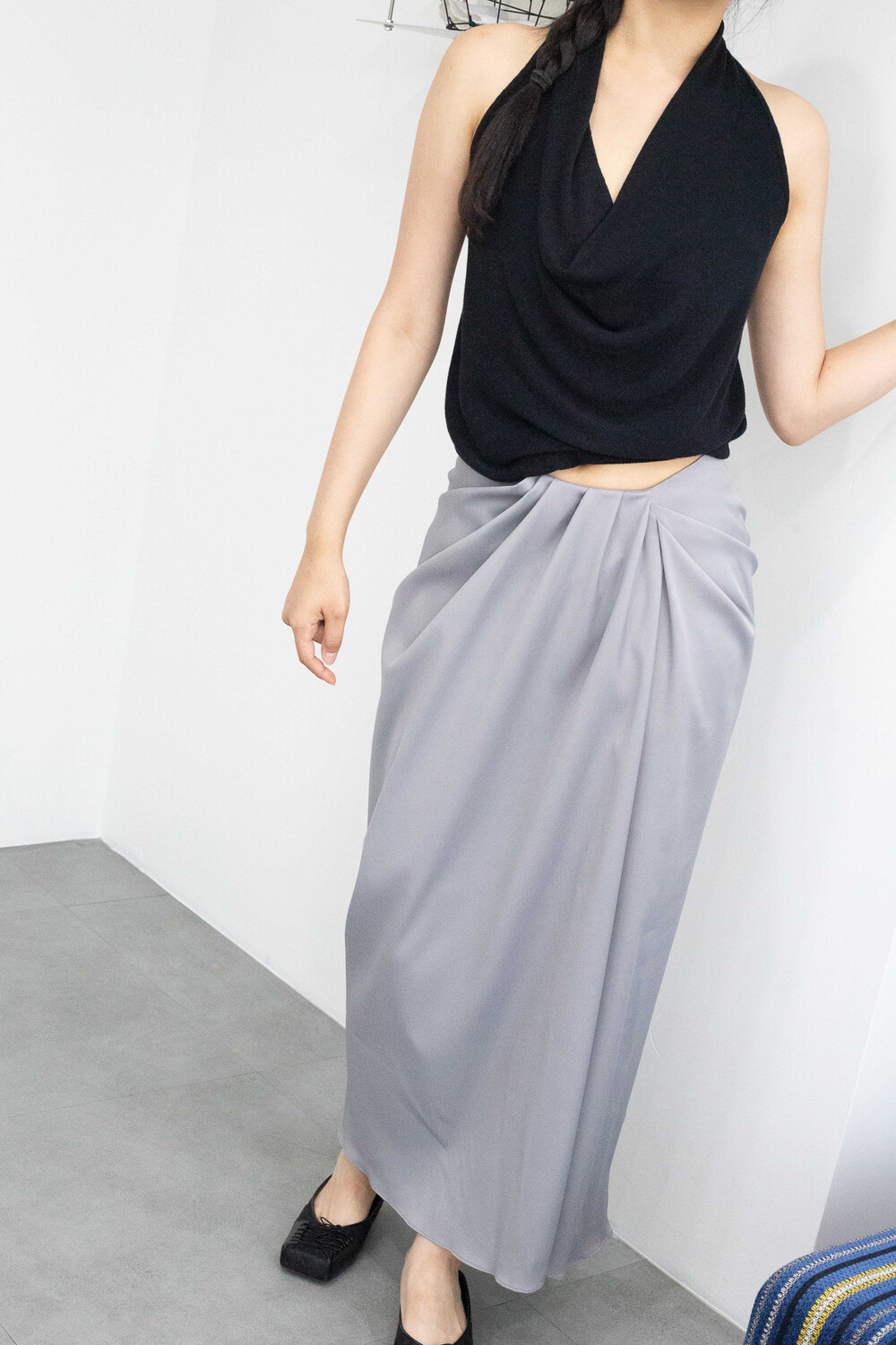 drape flow long skirt (gray)